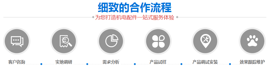 2、產品試樣:根據客戶需求提供合適的樣品試用,密切關注試用情況,調用供應廠家技術資源,不斷調試、更換合適樣品,直至達到客戶需求,在機電配件使用過程中碰到的各類問題提供現場解答。